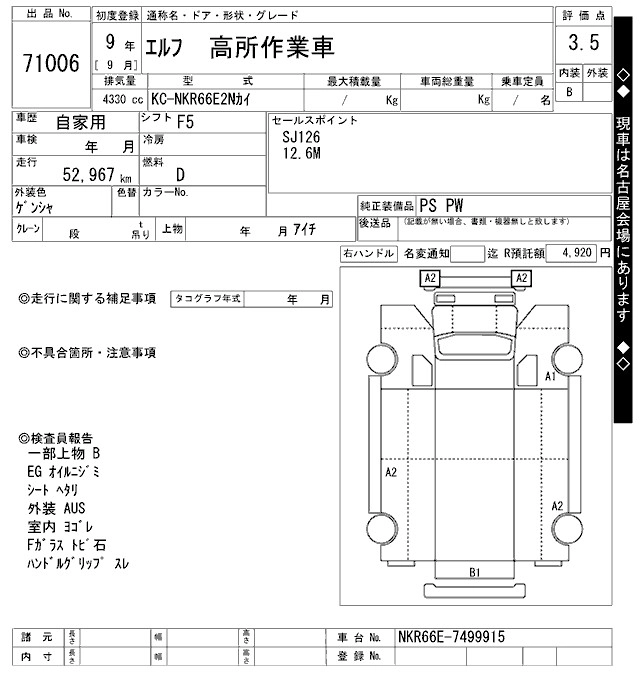 Год выпуска1997 Пробег 53 000 км КузовNKR66E2N Комплектация HIGH PLACE WORK