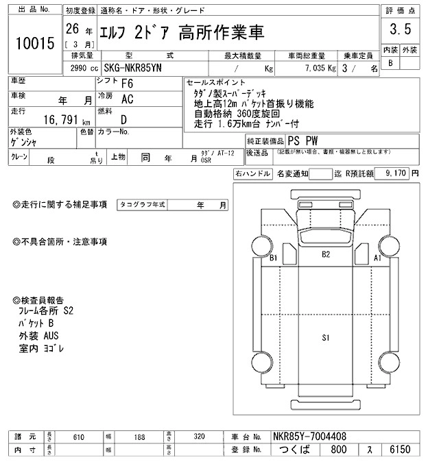 Год выпуска2014 Пробег 17 000 км КузовNKR85YN Комплектация HIGH PLACE WORK