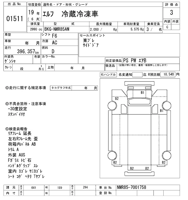 Год выпуска2007 Пробег 396 000 км КузовNMR85AN Комплектация CHILLING REFRIGERATOR