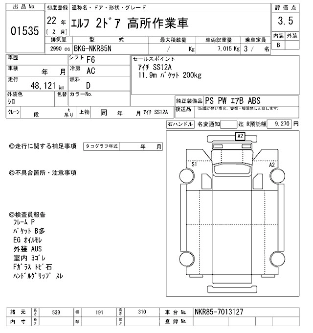 Год выпуска2010 Пробег 48 000 км КузовNKR85N Комплектация HIGH PLACE WORK
