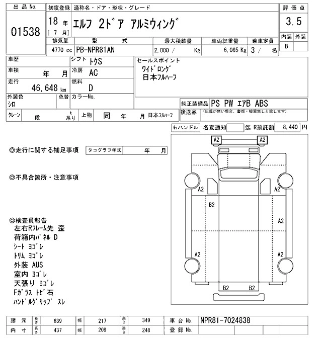 Год выпуска2006 Пробег 47 000 км КузовNPR81AN Комплектация ALUMINIUM WING