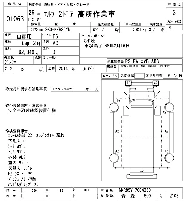 Год выпуска2014 Пробег 83 000 км КузовNKR85YN Комплектация HIGH PLACE WORK