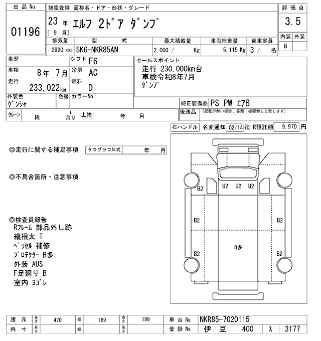 Год выпуска2011 Пробег 233 000 км КузовNKR85AN Комплектация DUMP