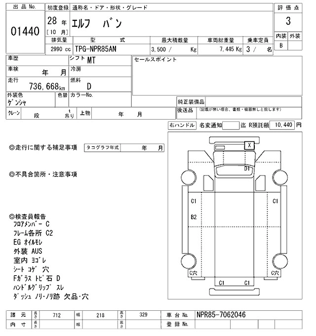 Год выпуска2016 Пробег 737 000 км КузовNPR85AN Комплектация VAN