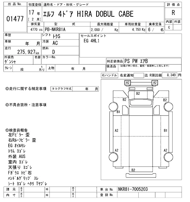 Год выпуска2005 Пробег 276 000 км КузовNKR81A Комплектация W CAB