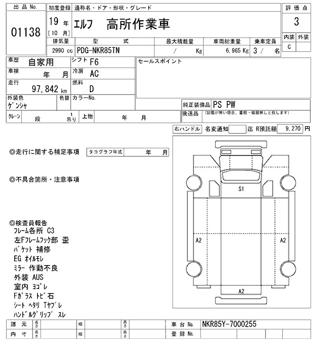 Год выпуска2007 Пробег 98 000 км КузовNKR85TN Комплектация HIGH PLACE WORK