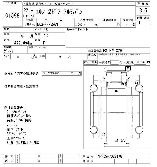 Год выпуска2010 Пробег 473 000 км КузовNPR85AN Комплектация ALUMINUM VAN
