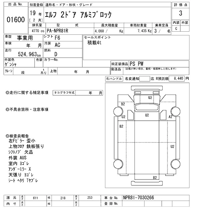Год выпуска2007 Пробег 525 000 км КузовNPR81R Комплектация COMMON. ALUMINIUM B