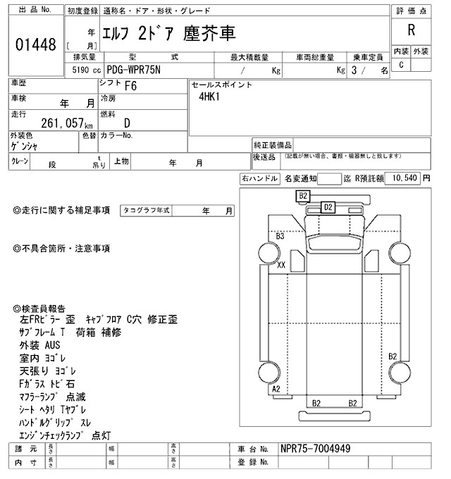 Год выпуска2000 Пробег 261 000 км КузовWPR75N Комплектация GARBAGE