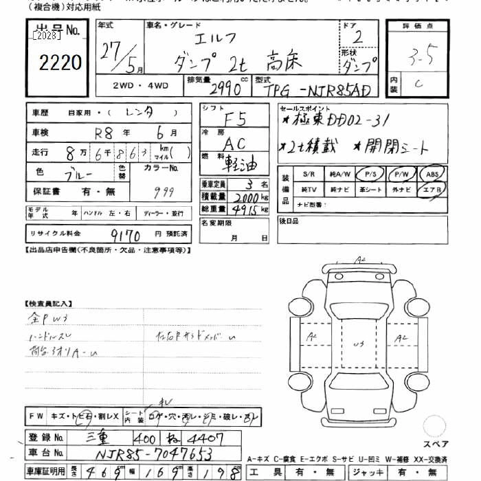 Год выпуска2015 Пробег 86 000 км КузовNJR85AD Комплектация DUMP 2T HIGH