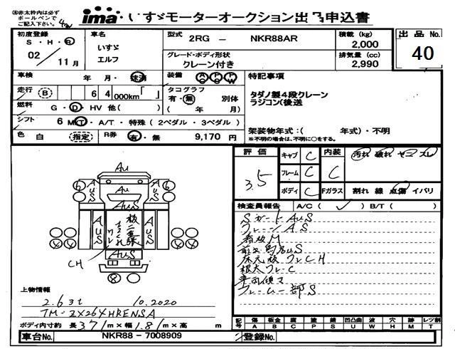 Год выпуска2020 Пробег 64 000 км КузовNKR88AR Комплектация CRANE ATTACHING
