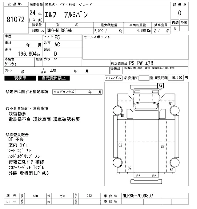 Год выпуска2012 Пробег 197 000 км КузовNLR85AN Комплектация ALUMINUM VAN