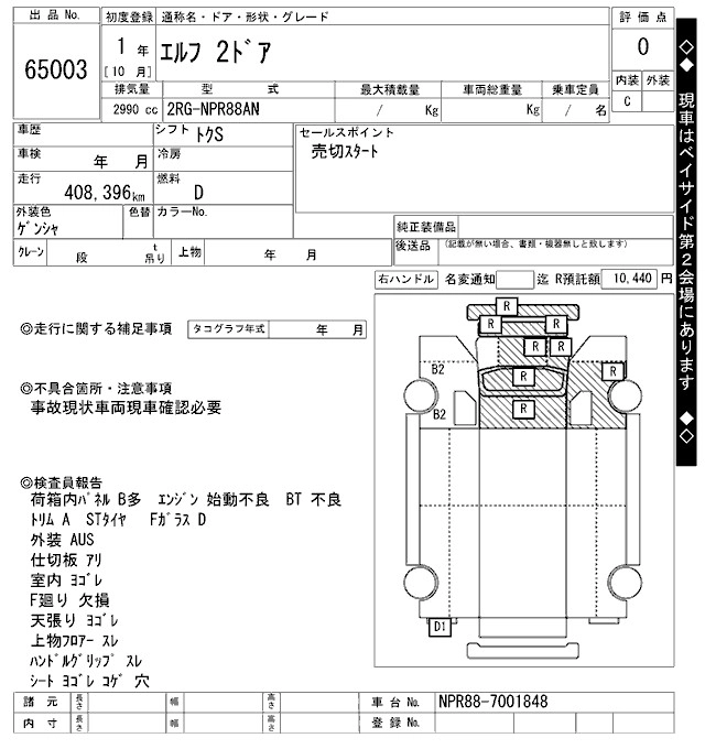 Стартовая цена авто на аукционе 70 000 ¥