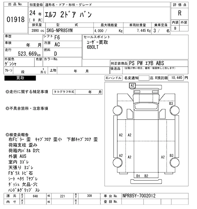 Год выпуска2012 Пробег 524 000 км КузовNPR85YN Комплектация VAN