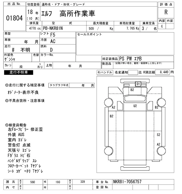 Год выпуска2006 КузовNKR81N Комплектация HIGH PLACE WORK