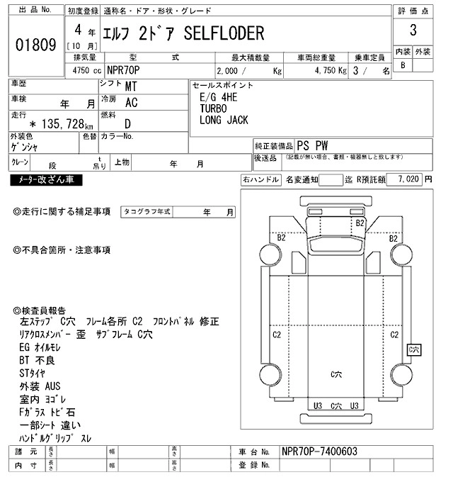 Год выпуска1992 Пробег 136 000 км КузовNPR70P Комплектация ROADER