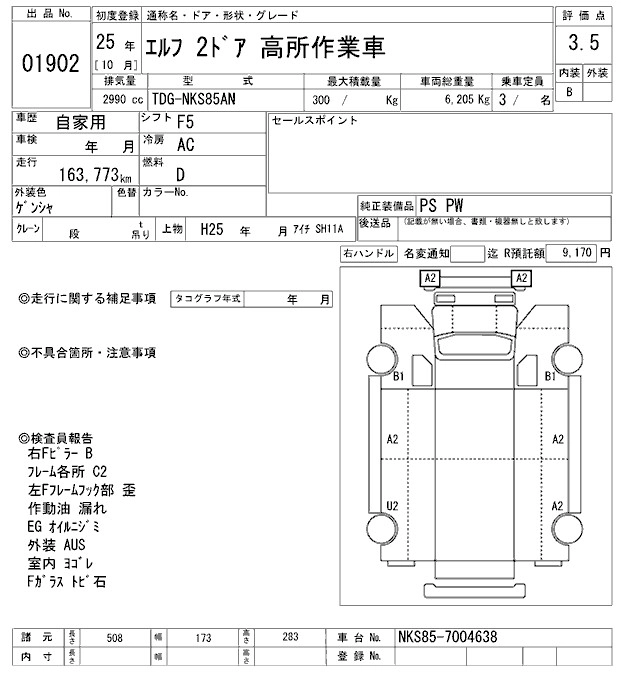 Год выпуска2013 Пробег 164 000 км КузовNKS85AN Комплектация HIGH PLACE WORK