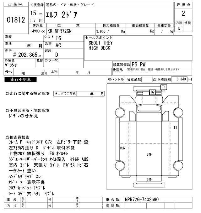 Год выпуска2003 Пробег 202 000 км КузовNPR72GN Комплектация COMMON