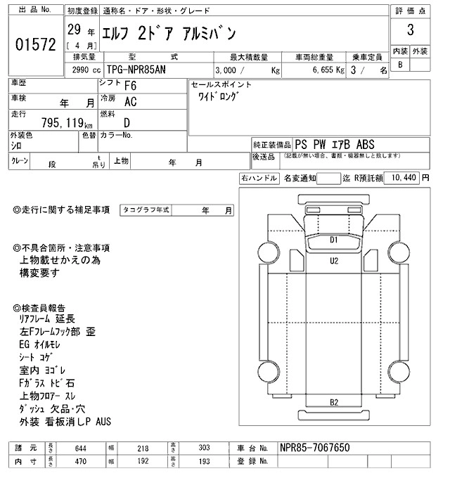 Год выпуска2017 Пробег 795 000 км КузовNPR85AN Комплектация ALUMINUM VAN
