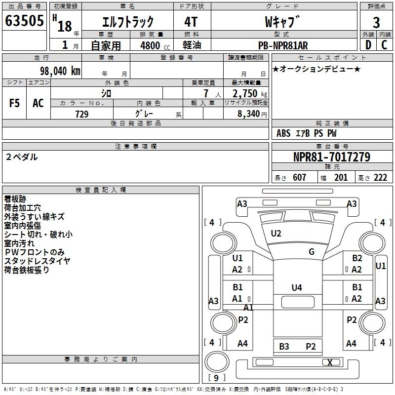 Год выпуска2006 Пробег 98 000 км КузовNPR81AR Комплектация W CAB