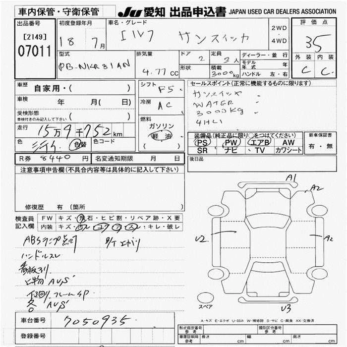 Статус выставлен на аукцион Лот 7011 Аукцион JU Aichi Дата аукциона 12.03.2026