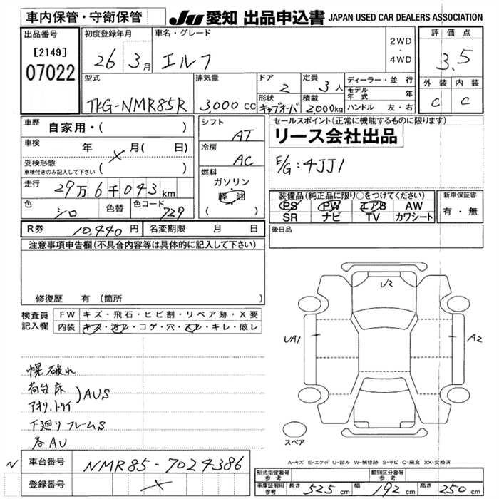 Статус выставлен на аукцион Лот 7022 Аукцион JU Aichi Дата аукциона 12.03.2026