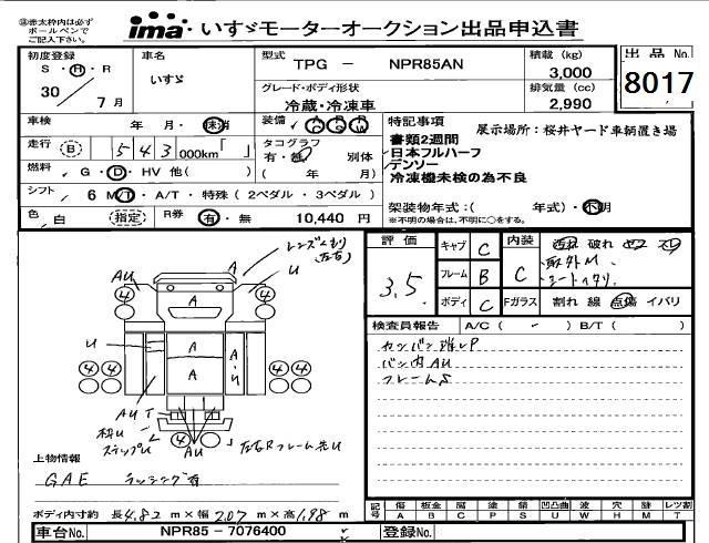 Год выпуска2018 Пробег 543 000 км КузовNPR85AN Комплектация REFRIGERATION * REEFER