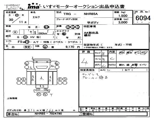 Статус выставлен на аукцион Лот 6094 Аукцион Isuzu Tokyo Дата аукциона 11.03.2026
