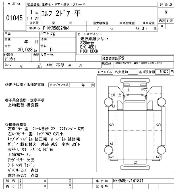 Итоговая цена авто на аукционе 1 045 000 ¥