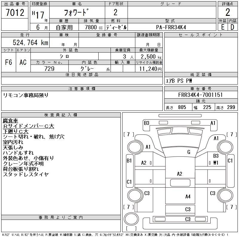 Год выпуска2005 Пробег 525 000 км КузовFRR34K4