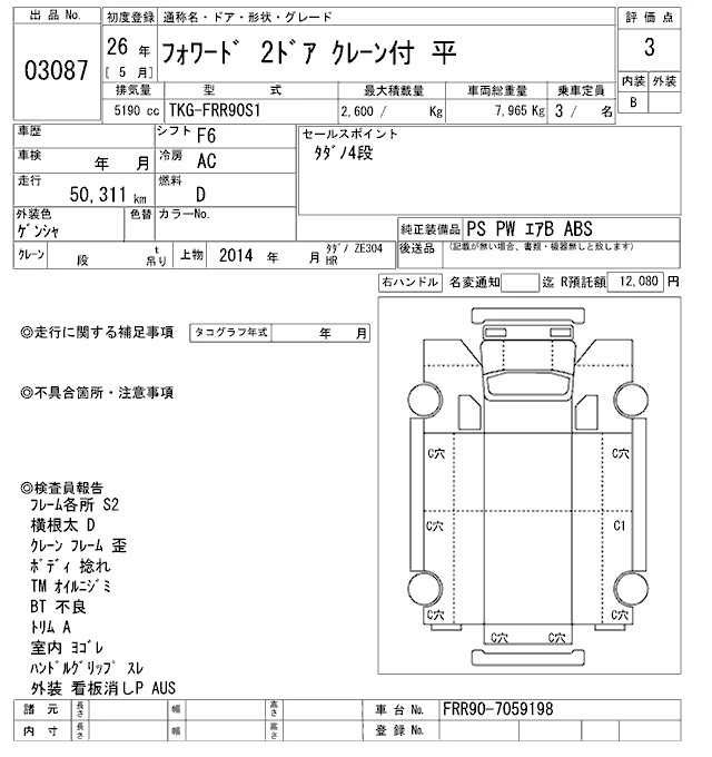 Год выпуска2014 Пробег 50 000 км КузовFRR90S1 Комплектация COMMON. CRANE 4 -STEP