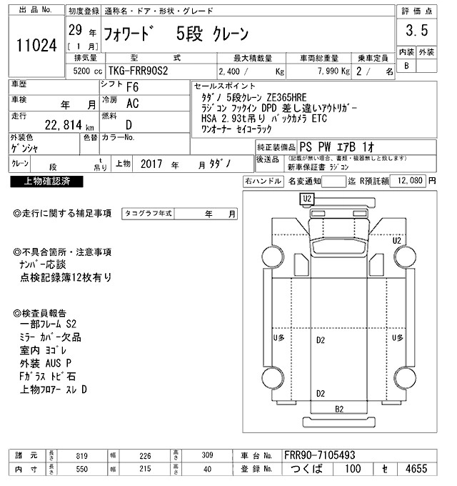 Год выпуска2017 Пробег 23 000 км КузовFRR90S2 Комплектация COMMON. CRANE 5 -STEP