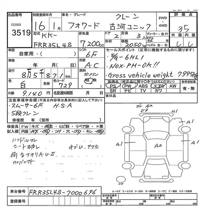 Год выпуска2004 Пробег 86 000 км КузовFRR35L4S Комплектация CRANE FURUKAWA UNIQUE