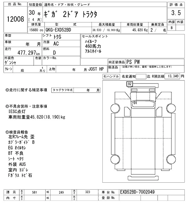 Год выпуска2018 Пробег 477 000 км КузовEXD52BD Комплектация TRACTOR HEAD