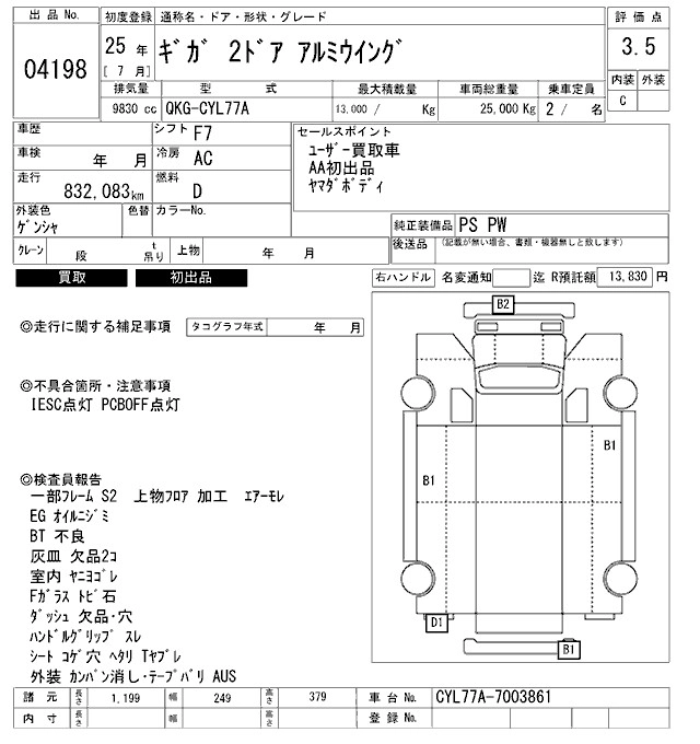 Статус выставлен на аукцион Лот 4198 Аукцион ARAI Oyama VT Дата аукциона 24.01.2026