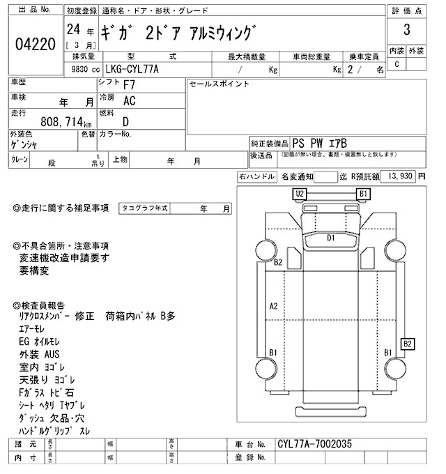 Статус выставлен на аукцион Лот 4220 Аукцион ARAI Oyama VT Дата аукциона 24.01.2026