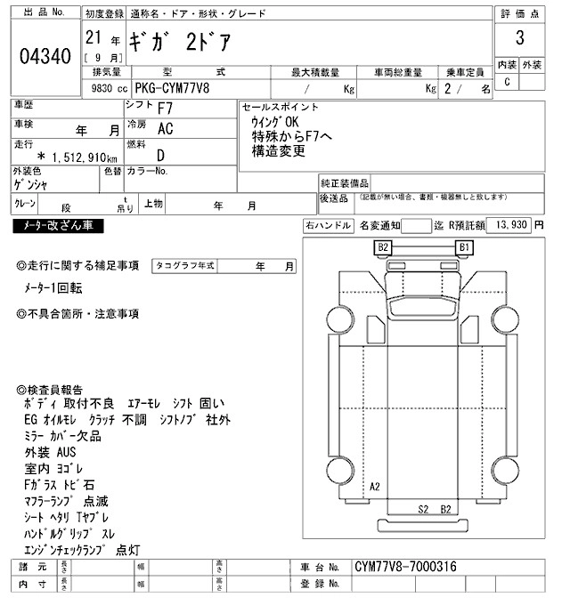 Статус выставлен на аукцион Лот 4340 Аукцион ARAI Oyama VT Дата аукциона 24.01.2026