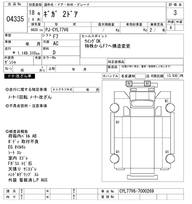 Год выпуска2006 Пробег 1 149 000 км КузовCYL77V6 Комплектация WING