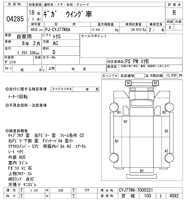 Год выпуска2006 Пробег 1 291 000 км КузовCYJ77W6A Комплектация ALUMINIUM WING