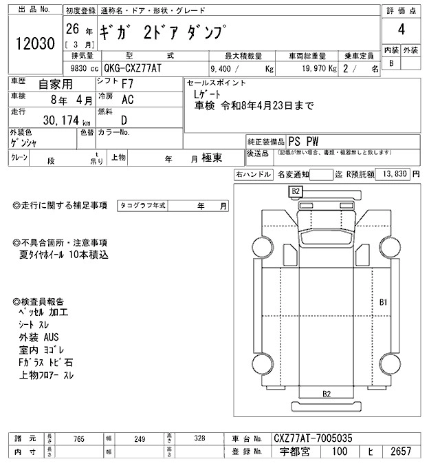 Статус выставлен на аукцион Лот 12030 Аукцион ARAI Oyama VT Дата аукциона 24.01.2026