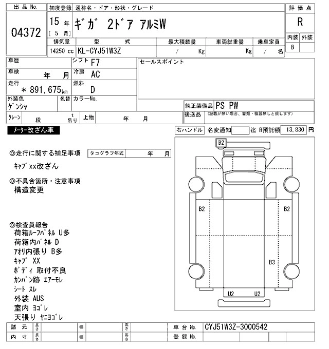 Год выпуска2003 Пробег 892 000 км КузовCYJ51W3Z Комплектация ALUMINIUM WING