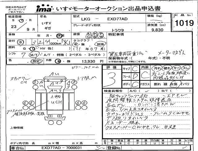 Статус выставлен на аукцион Лот 1019 Аукцион Isuzu Kyushu Дата аукциона 18.12.2025