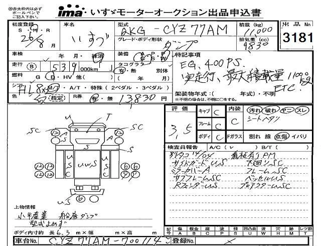 Год выпуска2014 Пробег 539 000 км КузовCYZ77AM Комплектация DUMP