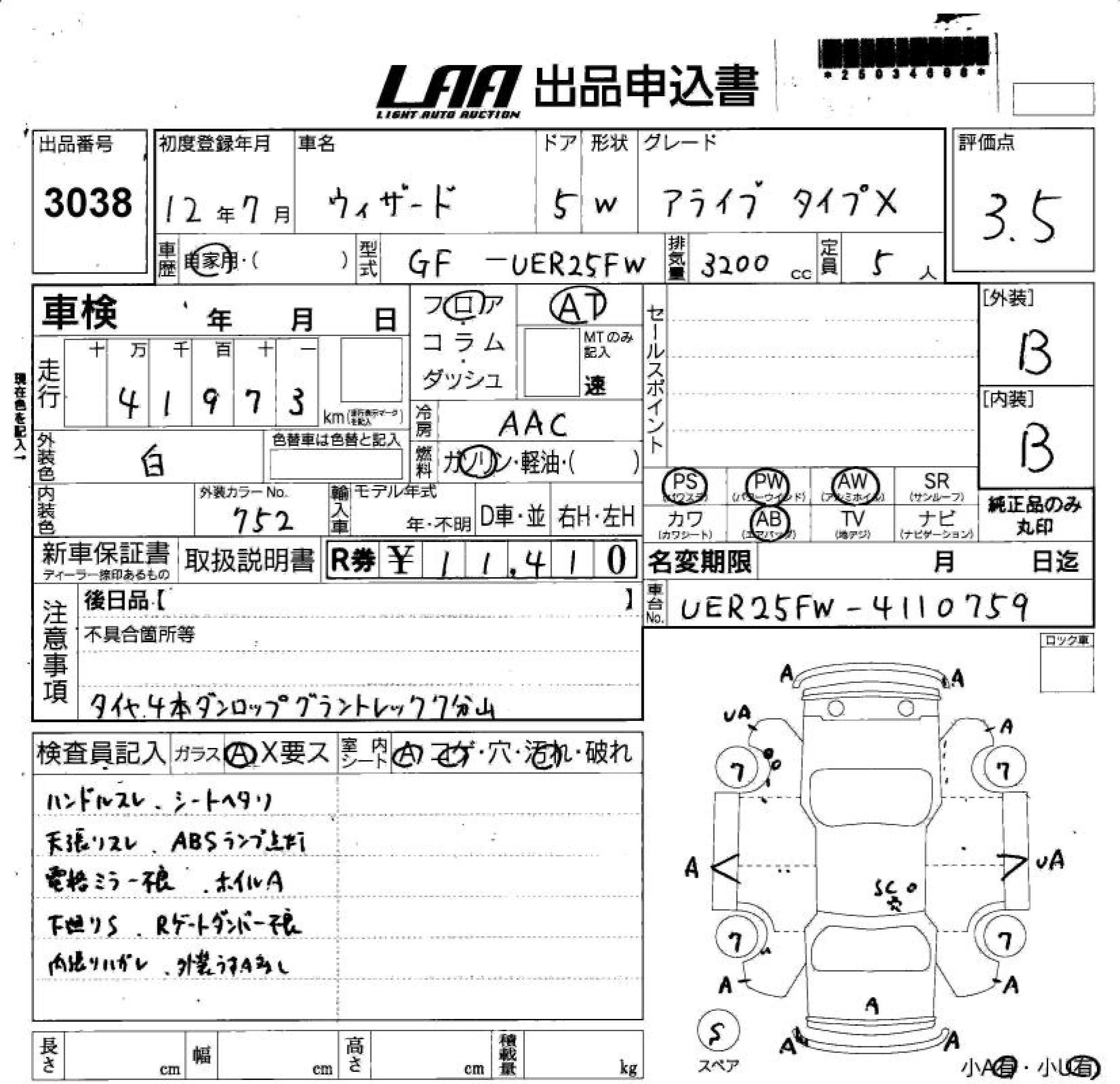 Статус выставлен на аукцион Лот 3038 Аукцион LAA Shikoku Дата аукциона 11.03.2026