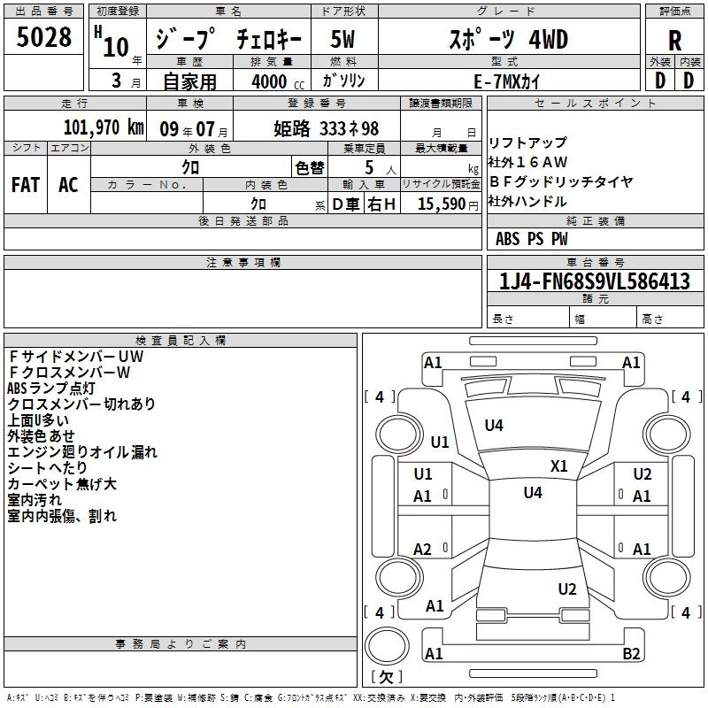 JEEP CHEROKEE 1998 г., лот № 5028