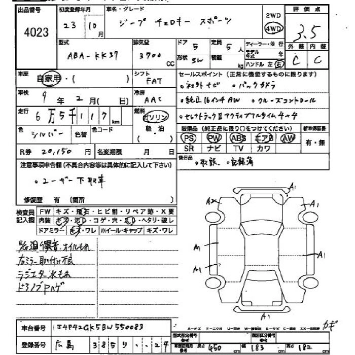 JEEP CHEROKEE 2011 г., лот № 4023