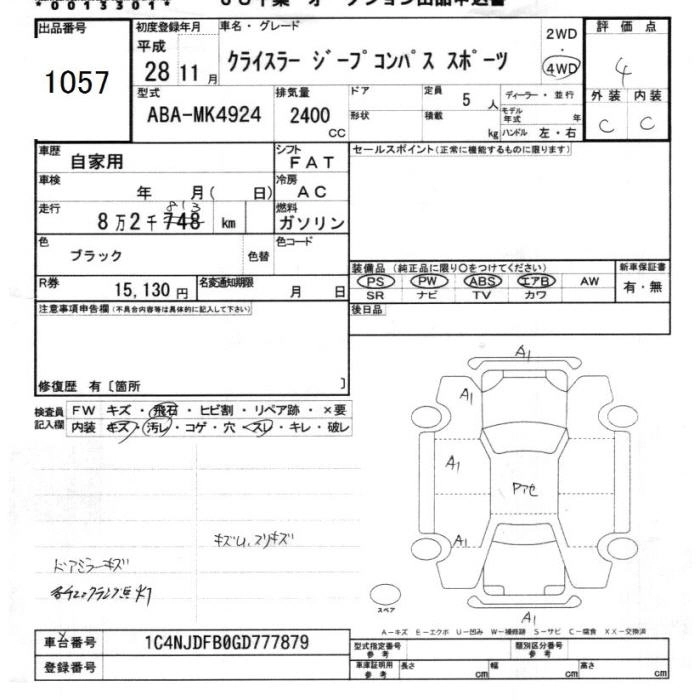 JEEP COMPASS 2016 г., лот № 1057