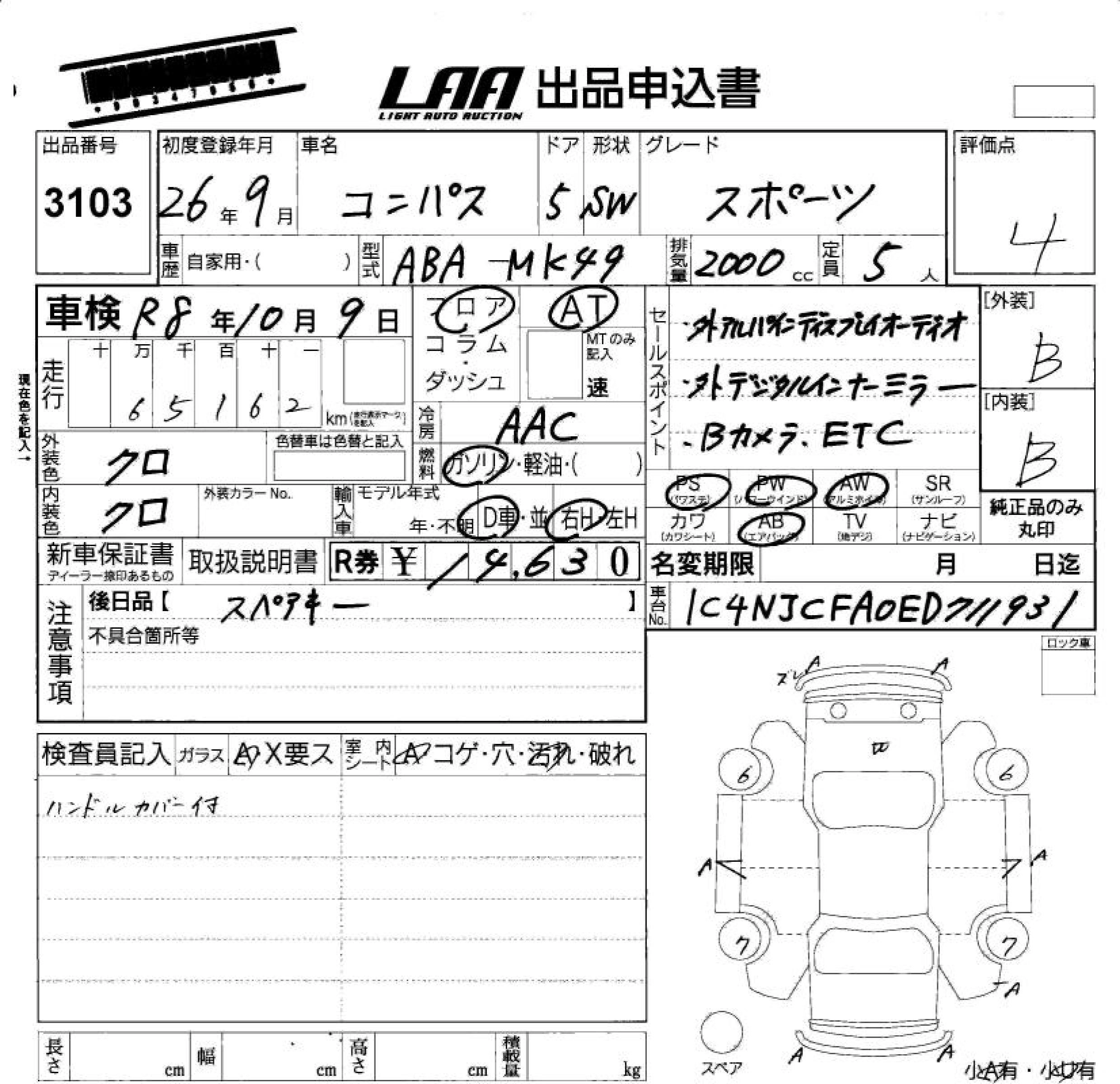 JEEP COMPASS 2014 г., лот № 3103