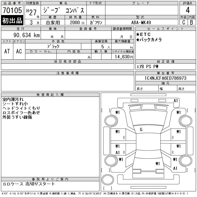 JEEP COMPASS 2015 г., лот № 70105