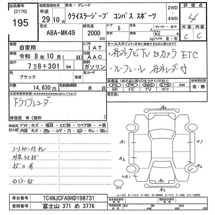 JEEP COMPASS 2017 г., лот № 195